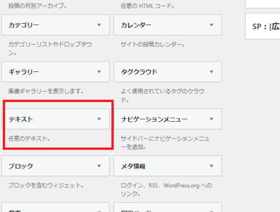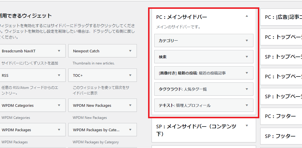 ▼の赤い枠内がサイドバー項目になっていますので、左側にあるウィジェットの